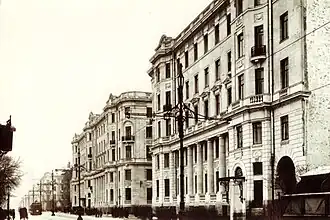 After the Russian Revolution of 1917 the house’s original residents—princes, counts and prosperous manufacturers were replaced by Bolshevik leaders. The apartments on Kamennoostrovsky Prospekt were taken by comrades Grigory Zinoviev, Jukka Rahja and other Vladimir Lenin’s brothers-in-arms. In April 1926 it became home for the heads of the Party’s Committee in Leningrad, Pyotr Popkov and Sergey Kirov. Kirov lived here until his death, and a memorial museum is now open for visitors in his former apartment.[5][6]