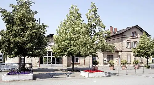 Bensheim-Auerbach station is a station on the Main-Neckar Railway in the Bensheim district of Auerbach on the Mountain Road in the German state of Hesse. It has a heritage-listed entrance building. The station is classified by Deutsche Bahn (DB) as a category 5 station.[1] Only Regionalbahn services stop at the 3 platform tracks (only tracks 1 and 2 are used regularly).