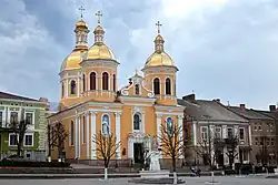Berezhany (Ukrainian: Бережани [bereˈʒɑnɪ] ⓘ; Polish: Brzeżany; Yiddish: ברעזשאַן, romanized: Brezhan) is a small city in Ternopil Raion, Ternopil Oblast, western Ukraine. It lies about 50 km (31 mi) from the administrative center of the oblast, Ternopil. Berezhany hosts the administration of Berezhany urban hromada, one of the hromadas of Ukraine.[1] Population: 17,139 (2022 estimate).[2]