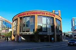 The first shopping centre on this location opened on 11 March 1988 and was called Bystasjonen.[1] On 19 March 1999 Bergen Storsenter opened, owned by the Olav Thon Group.[2][3][4] The new shopping centre was built by joining together Bystasjonen shopping centre with the building Kimhuset, which up until then had been used as first a shoe factory and later a furniture business.[5] Olav Thon Gruppen had bought both Kimhuset and Bystasjonen in 1997.[6][7] Compared to Bystasjonen, the number of stores grew from 38 to 72 with the completion of Bergen Storsenter. The centre was also noted for having the same chief executive since 1987, Ingunn B. Hansen, until 2015 when Odd Rune Bjørge took over.[8][9]
