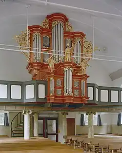 The current church building dates from 1875, and is a replacement of an older building from 1841.[4] The church has the status of a national monument because of the church organ, which was made in 1743 by the organ builder Matthias Amoor for the Reformed Church in Raamsdonk. In 1850 it moved to the Reformed Church of Aartswoud and in 1884 it was sold to the church in Berghuizen. During a restoration in 1951, K. Doornbos provided it with a so-called 'rugpositief' and a free pedal. These attributes were maintained when the Flentrop company restored the organ again in 1978.[5]