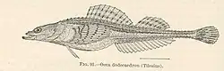 4. ^ Tilesius, W. G. von, 1813 [ref. 13413] Iconum et descriptionum piscium Camtschaticorum continuatio tertia tentamen monographiae generis Agoni blochiani sistens. Mémoires de l'Académie Impériale des Sciences de St. Petersbourg v. 4 (for 1811): 406-478, Pls. 11-16.