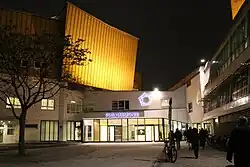 Hans Scharoun designed the building,[1] which was constructed over the years 1960–1963. It opened on 15 October 1963 with Herbert von Karajan conducting Beethoven's 9th Symphony. It was built to replace the old Philharmonie, destroyed by British bombers on 30 January 1944, the eleventh anniversary of Hitler becoming Chancellor.[2] The hall is a singular building, asymmetrical and tentlike, with the main concert hall in the shape of a pentagon. The height of the rows of seats increases irregularly with distance from the stage. The stage is at the centre of the hall, surrounded by seating on all sides. The so-called vineyard-style seating arrangement (with terraces rising around a central orchestral platform) was pioneered by this building, and became a model for other concert halls, including the Sydney Opera House (1973), Denver's Boettcher Concert Hall (1978), the Gewandhaus in Leipzig (1981), Walt Disney Concert Hall in Los Angeles (2003), and the Philharmonie de Paris (2014).[3][4]