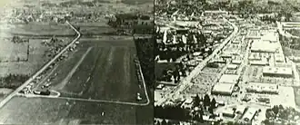 ![]() Bernard's Airport in the 1930s (looking south) with a 1980s view of the replacement shopping mall | |