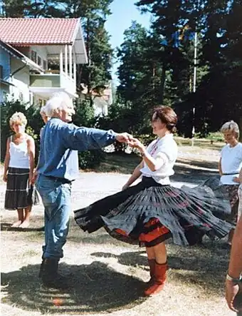 From 1976, Wosien introduced circle dance at the Findhorn Foundation in Scotland. He used both traditional dances and his own choreography to develop "group awareness".[3] Wosien's approach was taken up by Anna Barton, both at Findhorn and across Europe in the 1980s, and this style of sacred dance spread around the world.[4][5]
