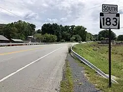 Pennsylvania Route 183 is the only numbered highway serving Bernville. It follows Bernville Road along a northwest-to-southeast alignment on the southwest side of the borough. PA 183 was built on the route laid out for the South Mountain Railroad, which was never built.[22] Main Street runs parallel to PA 183 two blocks to the northeast. It divides Bernville roughly east–west and spans the length of the original borough.
