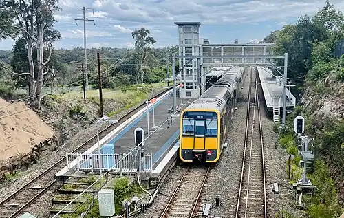 ![]() Southbound view of station, with a Tangara on Platform 2, October 2022 | ||||||||||||||||||||||||||||||