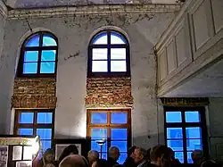 The synagogue was consecrated in 1877 after far-reaching new building work when the Jewish community, with its branches in nearby places, had roughly 180 members. In the main wing, the synagogue hall was found upstairs and, until 1904, the schoolroom downstairs. The side wings and building work about the entrance housed stairways, galleries and the ritual bath (mikveh). It has brickwork that was subsequently pargetted. When the community was dissolved in 1935, the synagogue was sold, and therefore not destroyed; it was however considerably altered and emptied. The three large round arch windows dated from 1877 were removed between 1937 and 1945 and substituted by two separate windows each. The window openings were bricked up in the middle in order to make the front of the former synagogue appear as a common two-storey building. Not only the neo-romanesque round arches were left but also the wooden frames of the original tall windows were reused to construct new windows. These changes of the religious appearance on the outside of the synagogue during the Nazi period are still clearly visible from inside the edifice. The walled up middle section of the front windows had never been plastered. In February 2010 an association for the support of the preservation of the synagogue was founded.
