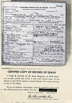 | Died | September 26, 1937 (aged 45) Clarksdale, Mississippi, U.S. |
