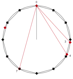 The delta scale may be regarded as the beta scale's reciprocal since it is "as far 'down' the (0 3 6 9) circle from α as β is 'up'."[5]