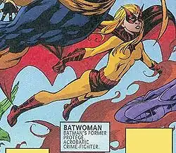 Mary Elizabeth Kane, better known as Bette Kane, is a superheroine appearing in American comic books published by DC Comics. The character first appeared in the 1960s as "Betty Kane", the Bat-Girl. Her name was later modified to "Bette Kane", and she assumed the role of Flamebird.[1]