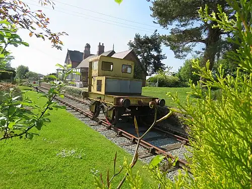![]() A Baguley-Drewry shunter stands on a short length of track at the former Bettisfield station | |||||