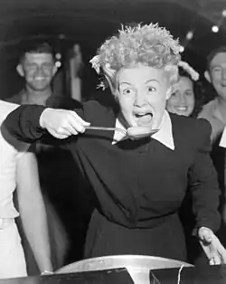 Betty Hutton (born Elizabeth June Thornburg; February 26, 1921 – March 12, 2007)[a] was an American stage, film, and television actress, comedian, dancer, and singer. She rose to fame in the 1940s as a contract player for Paramount Pictures, appearing primarily in musicals and became one of the studio's most valuable stars.[1] She was noted for her energetic performance style.[1]