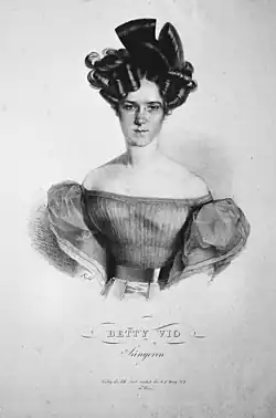 Vio's birth date is unknown, with sources both mentioning 22 June 1806[1] and 22 June 1808.[2][3] One contemporary source puts her age in 1812 as nine years old, meaning she would have been born in 1802 or 1803.[4] Her father is usually named as the Italian noble Francesco Vio,[2] but the fact that she was born in Lübeck makes it more likely that her parents were (Georg Friedrich) Wilhelm Vio and Philippine Vio (né Dupont) who were engaged in Lübeck from 1799 to 1809 and performed with Betty beginning in 1810 at the Bergisches Theater in Düsseldorf.[1]
