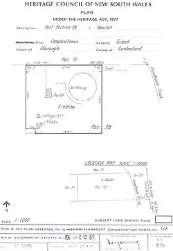 {{cite book}}: CS1 maint: multiple names: authors list (link) - Martin, Megan, for Sydney Living Museums/Historic Houses Trust of NSW (2013). Annotated SHR/HOD form/description/history with faults and suggested corrections.