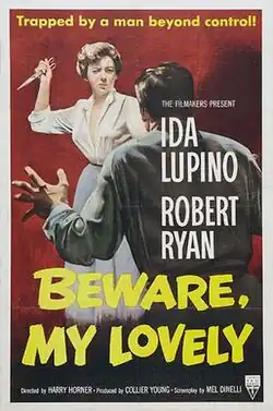 1. ^ a b Crowther, Bosley (September 13, 1952). "Ida Lupino and Robert Ryan Seen in Beware, My Lovely, New Film at the Palace". The New York Times. Retrieved 2012-11-26.