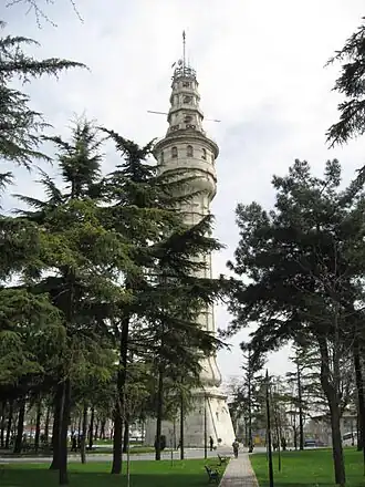 Beyazıt Tower, also named Seraskier Tower, from the name of the Ottoman ministry of War, is an 85-metre-tall (279 ft) fire-watch tower located in the courtyard of Istanbul University's main campus (formerly Ottoman Ministry of War) on Beyazıt Square (known as the Forum Tauri in the Roman period) in Istanbul, Turkey.
