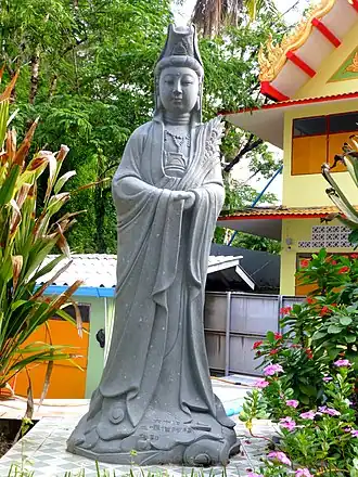 Bhaiṣajyarāja (Skt: भैषज्यराज; Traditional Chinese: 藥王; Simplified Chinese: 药王; pinyin: yào wáng; Japanese: 薬王 Yakuō; Vietnamese: Dược Vương Bồ Tát), or Medicine King, is a bodhisattva mentioned within the Lotus Sutra and the Sūtra Spoken by the Buddha on Visualizing the Two Bodhisattvas Bhaisajyarāja and Bhaisajyasamudgata (Chinese: 佛說觀藥王藥上二菩薩經).[1][2][3] In chapter 23 of the Lotus Sutra ("The Bodhisattva Bhaiṣajyarāja"), the Buddha retells a previous life of the Medicine King Bodhisattva, who burnt his body as a supreme offering to a buddha.[4][5][6] He is said to have been reborn over a period of numerous lifetimes healing and curing diseases, and is a representation of the healing power of the Buddha.