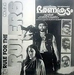 Bharanakoodam (transl. Government) is a 1994 Indian Malayalam-language political action film directed by Sunil from a story by Sab John and produced by V. Vargeese. The film stars Babu Antony and Geetha in the lead roles.[1][2]