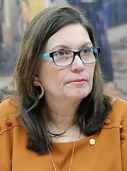 Beatriz Kicis Torrents de Sordi (born 19 September 1961), better known as Bia Kicis, is a Brazilian politician, activist, YouTuber, lawyer, and former attorney general for Brazil's Federal District. A self-declared right-winger,[1] she defends the use of verifiable paper records to prevent electoral fraud in the Brazilian electronic voting system.[2] Kicis was elected federal deputy for the Brazilian Chamber of Deputies in the 2018 general election.[3]
