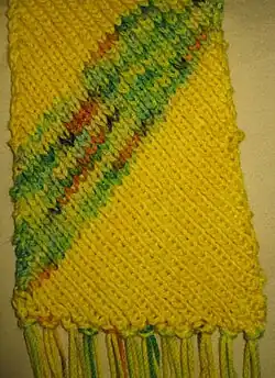 Bias knitting is where the rows of a fabric run diagonally, instead of horizontally.