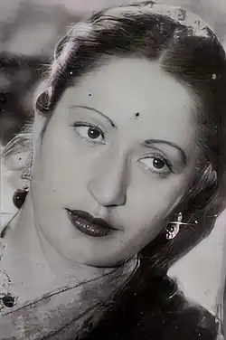 She worked with actors like Master Nissar, Surendra and Kumar. She formed a popular working relationship with them. Her pairing with Surendra was especially well-liked with the pair giving several hits like Manmohan (1936), Jagirdar (1937), Gramaphone Singer (1938), Dynamite (1938) and Ladies Only (1939). Her first film was Rangila Rajput, followed by Mayajaal, both in 1933.[7] She worked in nearly thirty films as a lead actress in India from 1933 to 1947, shifting to character roles in later years, following her move to Pakistan. She won the Nigar Award for the best character actress for her role in the Pakistani film Zehr-e-Ishq (1958).[8]