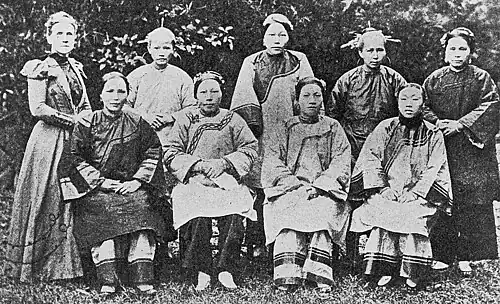 At the beginning of the nineteenth century, the creation of many interdenominational mission organizations was influenced by the Evangelical revivals, anti-slavery movements, and free trade theories, especially in Britain. The urge to preach the gospel to individuals shifted to nations and was motivated not only by religious zeal but was also inspired by Enlightenment ideology (which saw liberation and salvation of the world as an equal) to improve one's self to contribute the global progress.[2] In this context, Protestant missionary women from the western world became increasingly interested in mission and trained themselves as educators, doctors, nurses, and other professionals to join in the mission work. They played a central role in mission fields as doctors, nurses, and teachers; they ran schools, hospitals and orphanages for children, etc. By the beginning of the twentieth century, most of the missionaries operating in the mission field were women.[3]
