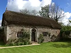 The thatched former stable block was rebuilt in the 19th century on the site of an earlier building. It is surmounted by a turret clock, and has now been converted into accommodation and reception rooms.[9]