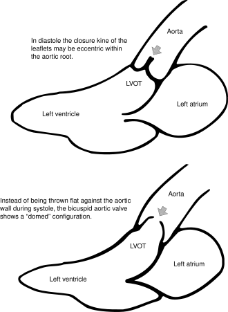 5. ^ a b Bissell MM, Hess AT, Biasiolli L,etal.Aortic dilation in bicuspid aortic valvedisease: flow pattern is a major contributor and differs with valve fusion type.Circ Cardiovasc Imaging 2013; 6:499 – 507.