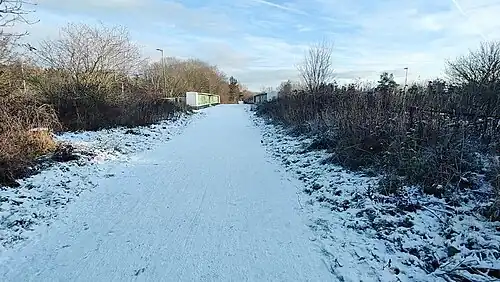 Biddick Lane railway station served the Fatfield area of Washington, in Tyne and Wear (historically County Durham), England. It was on the former Stanhope and Tyne Railway between Washington and Chester-le-Street. The station opened in 1864 and closed shortly after in 1869. The line remained in use for passenger and goods traffic until 1955 when the line was closed to passengers and the 1980s to freight traffic. The station has since been demolished and the line is now in use as the Consett and Sunderland Railway Path between Chester-le-Street and Washington.[1][2]