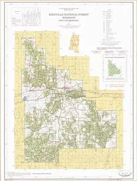 Bienville National Forest is a United States National Forest in central Mississippi, named for Jean-Baptiste Le Moyne de Bienville. It lies in parts of Scott, Smith, Jasper, and Newton counties and has an area of 178,541 acres (72,253 ha). The forest is headquartered in Jackson, as well as all six National Forests in Mississippi,[3] with local ranger district offices located in Forest, Mississippi.