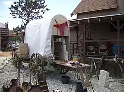 The museum contains nine structures that contain exhibits. It includes a working blacksmith shop, a gold panning station, a stamp mill, and picnic grounds.[1][6] The Shay Cabin and the stamp mill were transported to the museum by what was once the only crane in the valley.[7] The Cienaga Log Cabin was built in 1875 and the Doble schoolhouse was built in 1901; it was formerly located in the now-ghost town of Doble, California. The oldest building in the city is also located in the museum; it was built in 1864.[8]