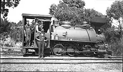 On the Marrawah Tramway, the locomotive was locally known as Big Ben, however it was also referred to as Marrawah tramway No. 3. When the Tasmanian Government Railways (TGR) took over the Marrawah Tramway in 1929, the engine passed into its ownership.[1] Big Ben was apparently light on the front wheels and as a result, the front was often prone to rise above the wheels when running front first. On 6 September 1938 when running with a load of logs the wheels risen up again but when they came down they didn't find the rails resulting in a derailment which caused the driver to die from injuries the next day. After this incident, a load of old rails were tied to the front of the engine to weigh it down.