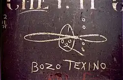 This 55 min. experimental documentary film was shot primarily in black and white 8mm and 16mm film and was subsequently digitally edited. With a goal of tracing the true identity behind Bozo Texino, whose iconic hand-drawn cowboy moniker has appeared on the sides of trains for nearly a century, Bill Daniel hopped boxcars with drifters and camped in hobo jungles, all the while collecting stories and images of a little-known American folk art tradition.[1]