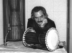 Kreutzmann with a talking drum, 1982 Photo: David Gans
