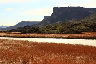 The Bill Williams River National Wildlife Refuge protects the lower course of the river, to its mouth at Lake Havasu reservoir.[11] The Sonoran Desert rare riparian habitat of Bill Williams River NWR draws a variety of Neotropical migratory birds, from Central and South America en route to their breeding grounds in the north. It has one of the last stands of the natural Cottonwood-Willow Forests plant community along the lower Colorado River, with Fremont's cottonwood (Populus fremontii) and Goodding's willow (Salix gooddingii) the primary tree species.[12]