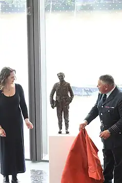On 4 June 2024 the Billy Fiske Foundation unveiled and dedicated the Billy Fiske statue at the U.S. Embassy in London, UK. Remarks were presented at the private event by The Honorable Matthew W Barzun, 66th Ambassador to the Court of St James, sculptor Jenna Gearing as well as by Billy Fiske Foundation president Kevin Billings. Gearing was commissioned to create the work of art, which is sculpted in bronze. The statue will reside inside the embassy, at the entrance to the Office of Defense Cooperation.[32]