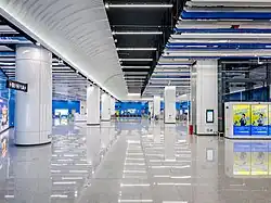 The station completed its diaphragm wall enclosure construction on 7 December 2021.[7] The base slab was sealed on 31 May 2022,[8] and the roof slab was sealed on 8 April 2023.[9] In March 2025, the station completed the “three rights” transfer.