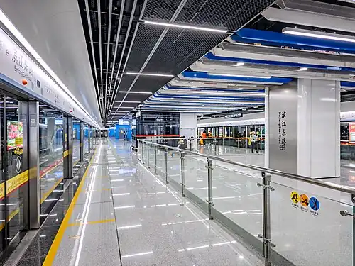 Line 28 was originally planned to stop at Binjiang East Road,[13] and transfer tunnels and a platform was reserved when Line 10 was built.[14] However, in the latest plan, the Binjiang East Road Station of Line 28 was cancelled. Many people suggested that the station should be retained, or converted into a reserved station in the same way as the Pujun Beilu station on the Foshan Metro's Guangfo line.[15][16]