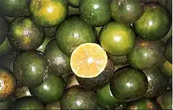 In 1927, Catholic missionary from Netherlands named Father Bergh first introduced lime to Bintangor. Ling Ming Lok was the first person who successfully cultivated the lime near the Rajang river.[1][note 21] Mass production of lime with unique taste has earned the town the nickname "lime town" (桔子城).[1][note 22] There was once a factory in Bintangor which produced the "Green Mountain" brand of lime beverages, but with the competition from the outside branded soft-drink manufacturers, the factory was closed down.[3] Rice mills and sago mills operations were the main economic activities at that time.[6]