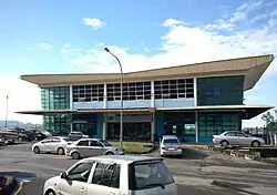 Since 1978 the town of Bintulu has been administered by the Bintulu Development Authority (BDA), with offices located along Jalan Tanjung Kidurong.[47] The town is located within the boundary of Bintulu District, with a population of 183,402[6] and a total area of 7,220.40 square kilometres (2,787.81 sq mi).[48] Bintulu Division was formerly a Bintulu District under the jurisdiction of Miri Division. The former Bintulu District was upgraded to Bintulu Division on 1 January 1987. At the same time, Bintulu sub-district was upgraded to the present-day Bintulu District.[30] Both the Bintulu Resident and District offices are located inside Wisma Residen, Pisang Keling Street, Bintulu.[49][50]