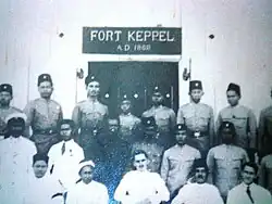James Brooke was appointed the White Rajah of Sarawak (now known as Kuching) by the Bruneian Empire in 1841. In 1861, the Sultanate of Brunei ceded the Bintulu region to Brooke.[15][16] Bintulu was a small settlement at that time. A wooden fort named Fort Keppel was built in the village,[17] named after Sir Henry Keppel, who was a close friend of the Rajah James and Charles Brooke. Sir Henry Keppel was responsible for crushing the Dayak piracy in the Saribas between 1840 and 1850.[18] Meanwhile, Charles Brooke was a nephew of James Brooke and would later become the latter's successor as the second Rajah of Sarawak. Odoardo Beccari, an Italian botanist, visited Bintulu in 1867. On 4 August, he started his journey on a gunboat named "Heartsease", which was to send $6,000 to Brunei for concessions being made to James Brooke in the Mukah and Bintulu regions. He went to Labuan before coming back to Bintulu. He dropped off at Kemena River on 13 August 1867. His observations of the village were recorded as follows:[19]