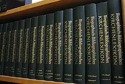 - Friedrich Wilhelm Bautz (from Volume 3 onwards continued by Traugott Bautz): Biographisch-bibliographisches Kirchenlexikon, 14 Bände (+ bisher 14 Ergänzungsbände), Bautz, Hamm 1975ff