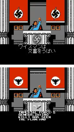 For the release of the international version of the game, several changes were made. Most references to Nazism in text and imagery were removed for the English localization. The Empire in the Japanese version was actually a neo-Nazi nation and the Imperial Army's insignia was a Nazi Swastika with a thunderbolt behind it. In the English version, the Nazis are referred as the "Badds", though the backstory in its manual refers to them as the "Nazz".[5]: 4 [7] The Imperial Army's Swastika insignia was changed to a symbol resembling the eagle emblem used by Nazi Germany; and the leader of the villains, originally called Weizmann in the Japanese version,[3]: 4 was renamed Killt, although the soldiers and characters keep their same Nazi-like appearance. The difficulty of the game was rebalanced and some of the areas were made less difficult.[8]