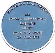 BCS blue plaque on Bennetts Hill, marking the birthplace of Edward Burne-Jones