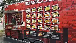 The original Birrieria PDX operates from a red food cart on Division Street in southeast Portland's Centennial neighborhood, serving Mexican cuisine such as birria (including birria tacos and "birriamen",[1] or ramen with birria),[2] quesabirria, rice, beans, shredded meat, horchata, and agua frescas.[3] The Plaza Plate includes a quesadilla, taco, mulita, tostada, and cup of consommé.[4]