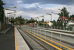 Bjørnsletta is a station on the Kolsås Line of the Oslo Metro. It serves the residential area of Øraker in Oslo, Norway and is served by Line 3. The station opened on 17 August 2010 and replaced two former stations: Bjørnsletta (located at a different location) and Lysakerelven. Both these stations were closed in 2006 while the Kolsås Line was being upgraded from a light rail to a rapid transit. Bjørnsletta is 8.2 kilometres (5.1 mi) from Stortinget.