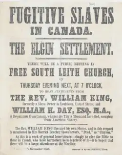 Fugitive Slaves in Canada poster for Rev. William King