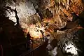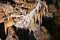 Black Chasm was likely known about by the local Miwok tribes, though gold miners were the first credited with exploring the cave in 1854. The miners described the cave as having "...vaulted chamber[s] large enough to contain the largest trees..." and "... crystals [that] stood out from the walls in every conceivable direction, turning and bending into many shapes...".[2] These turning and bending formations are known as helictites and are an unusual formation in cave systems throughout the world. Somewhere near the 1860s, the cave entrance was enlarged from its original 18" wide crack in order to accommodate stairs for tours. The tours lasted only a short time before the cave was abandoned.[3]