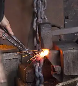 An important development in the early 17th century was the introduction of the slitting mill to the Midlands area. In the Black Country, the establishment of this device was associated with Richard Foley, son of a Dudley nailer, who built a slitting mill near Kinver in 1628.[37] The slitting mill made it much simpler to produce nail rods from iron bar.